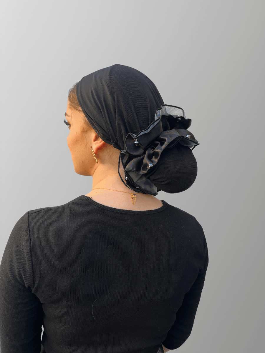 לשילוב ושידורג הטורבן רשת וליצירת מראה נמוך עם גומיה מעוטרת.