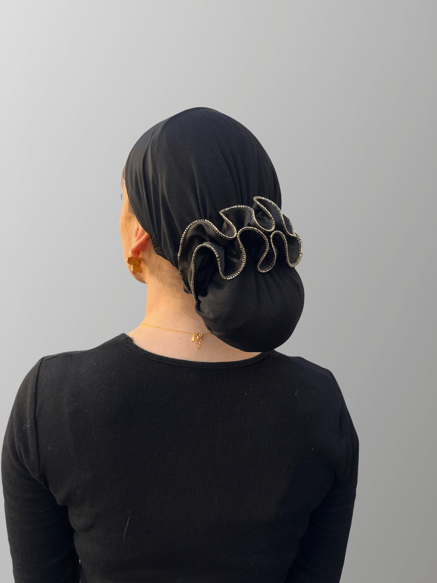 לשילוב ושידורג הטורבן רשת וליצירת מראה נמוך עם גומיה מעוטרת.
