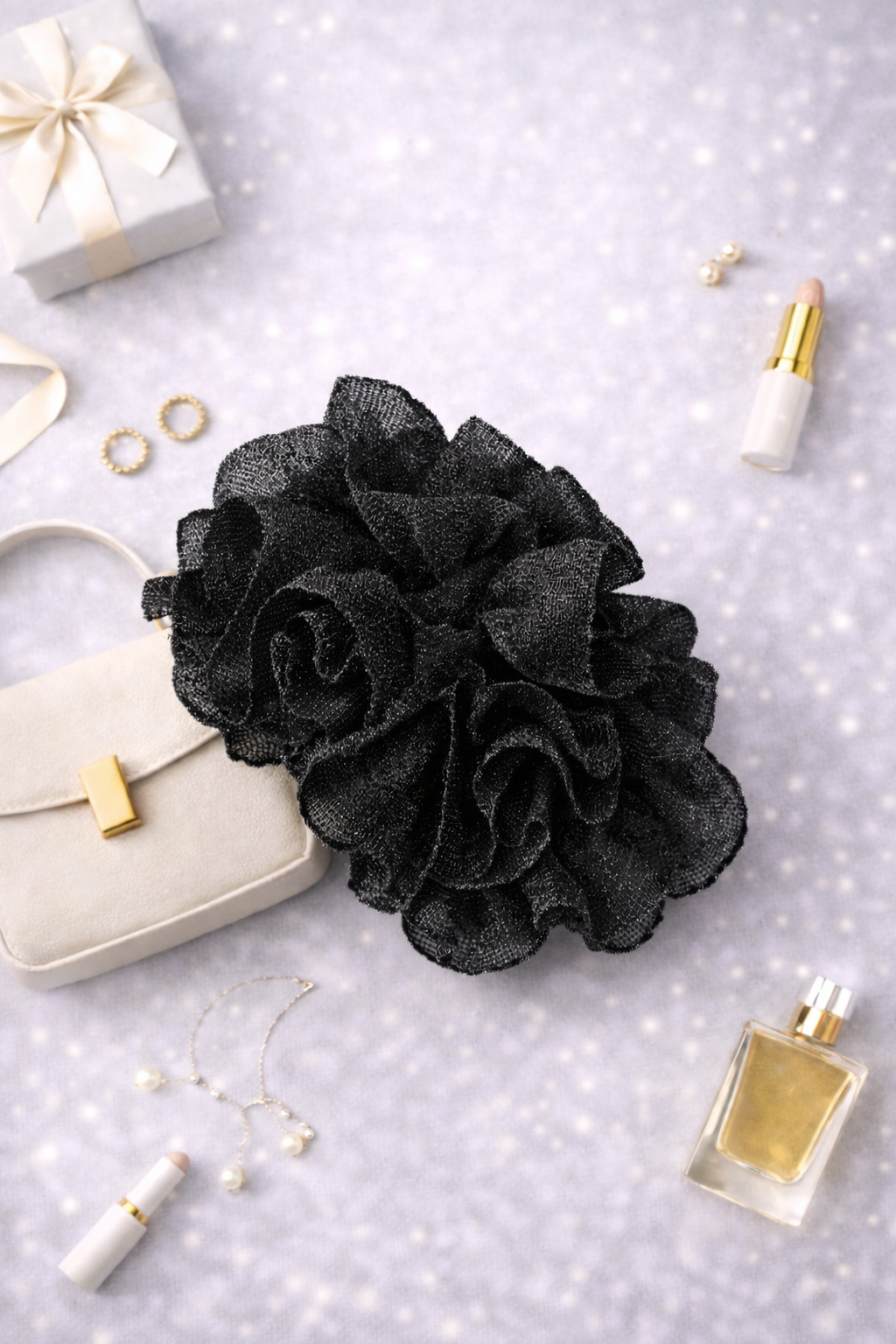גומיה שחורה המורכבת משכבות בד מנצנץ