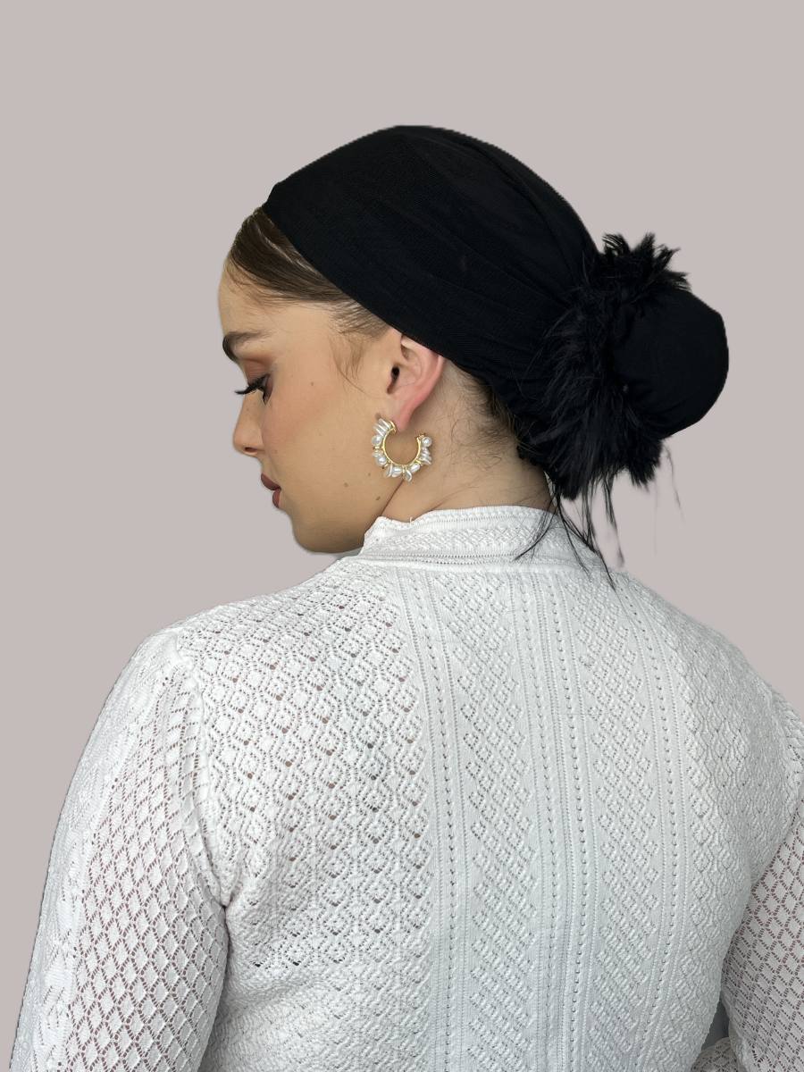 גומיית נוצות שחורה חורפית במיוחד. ניתן לקשור אותה על טורבן רשת כבסיס.