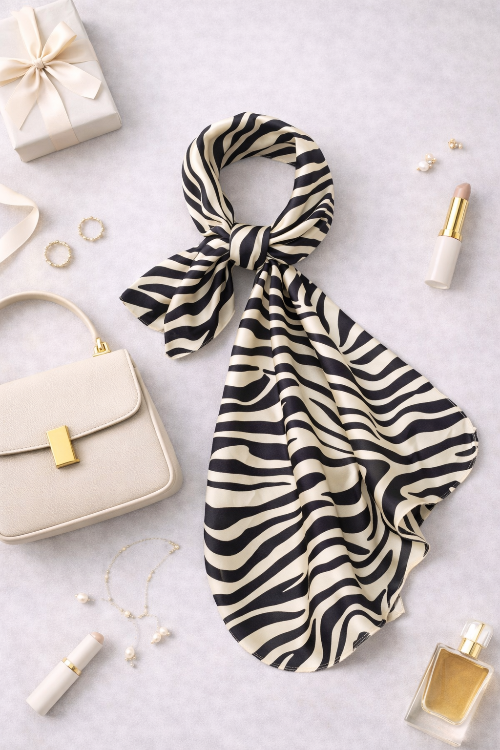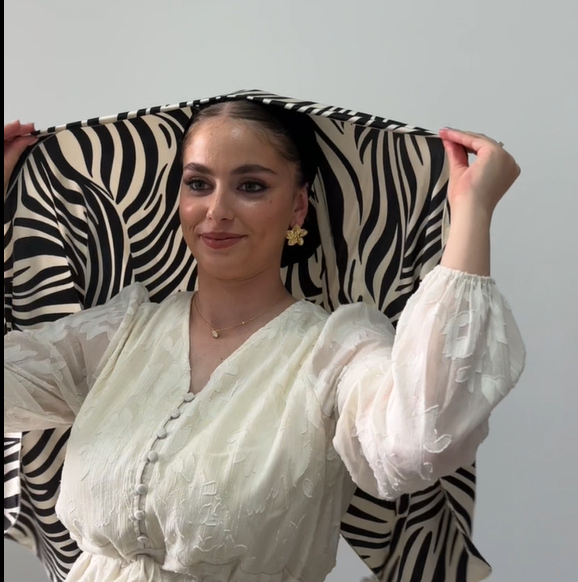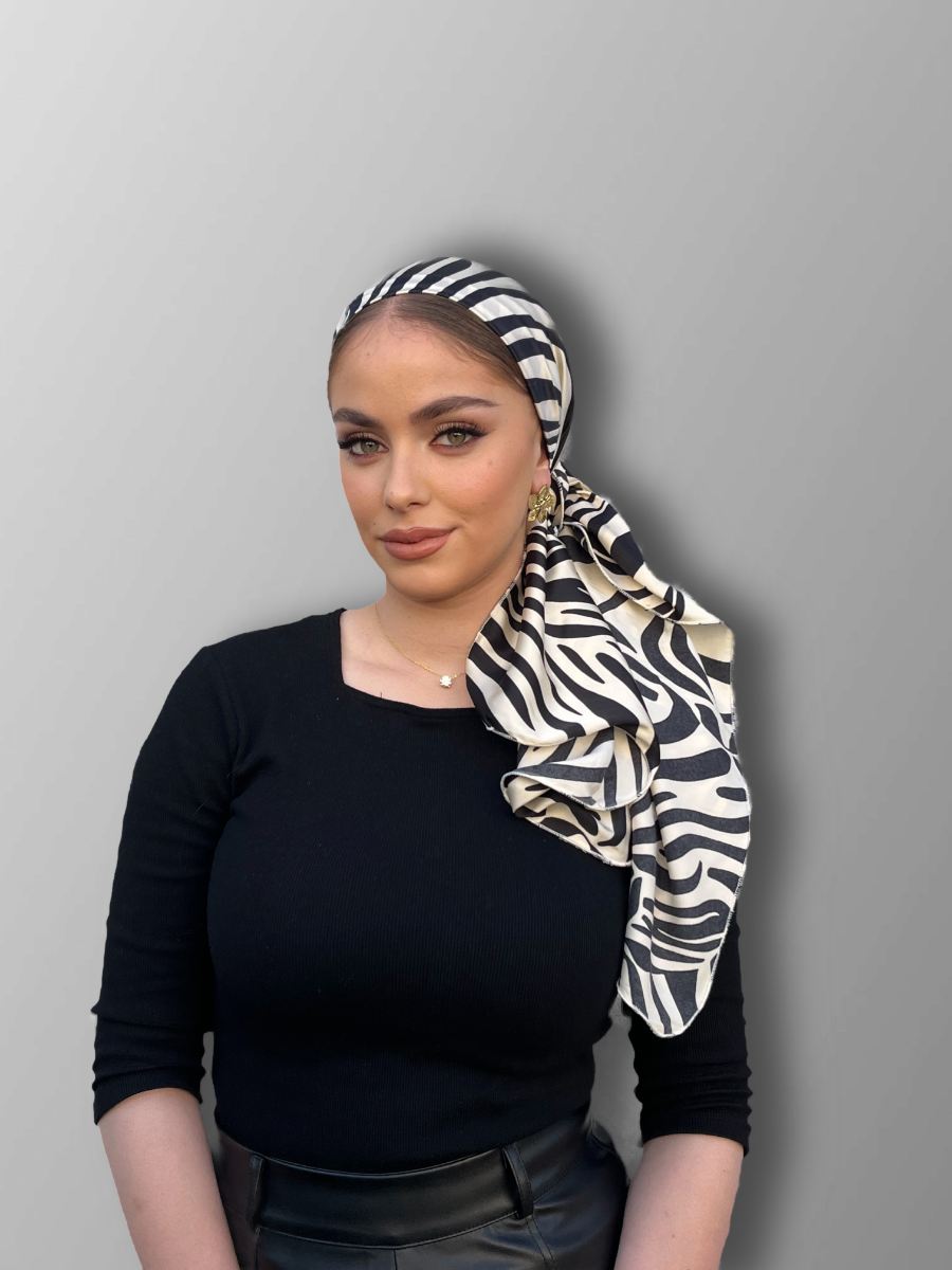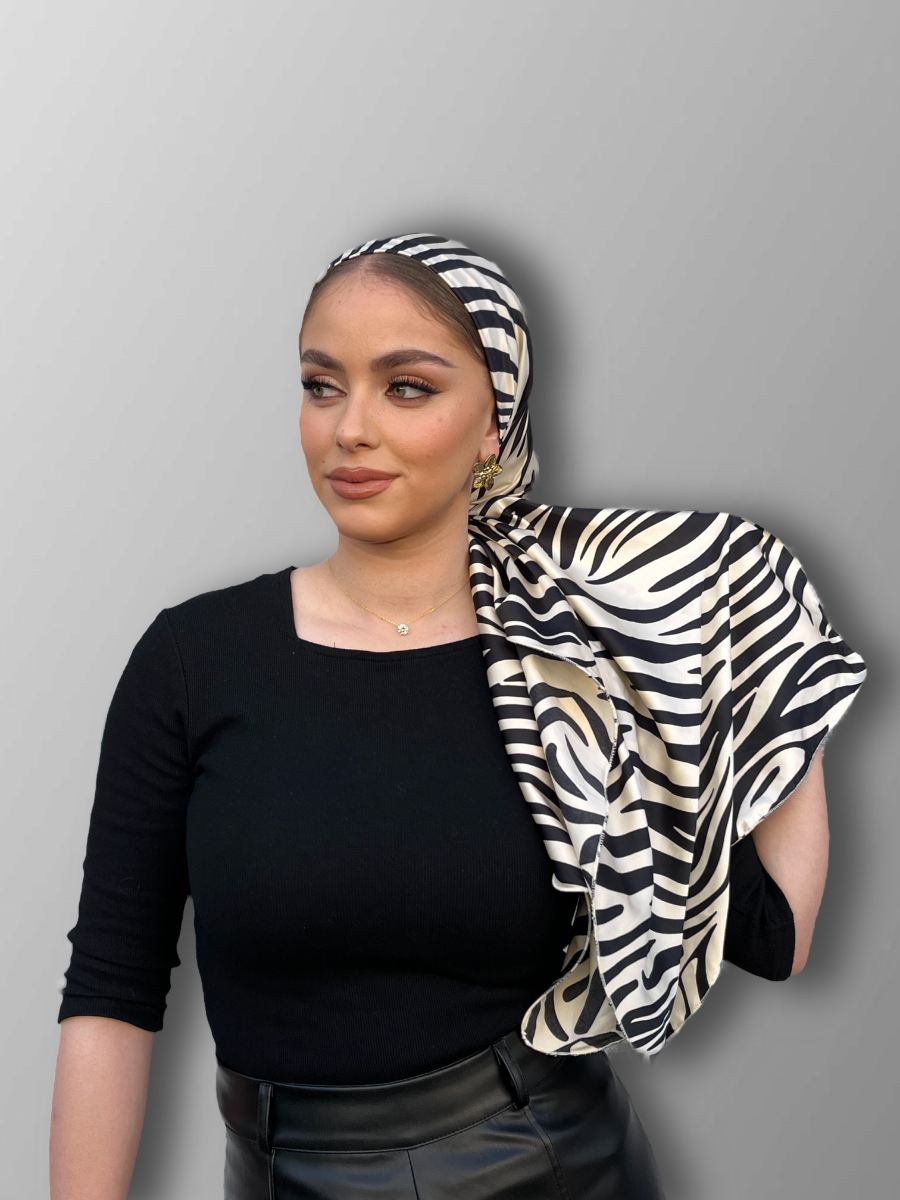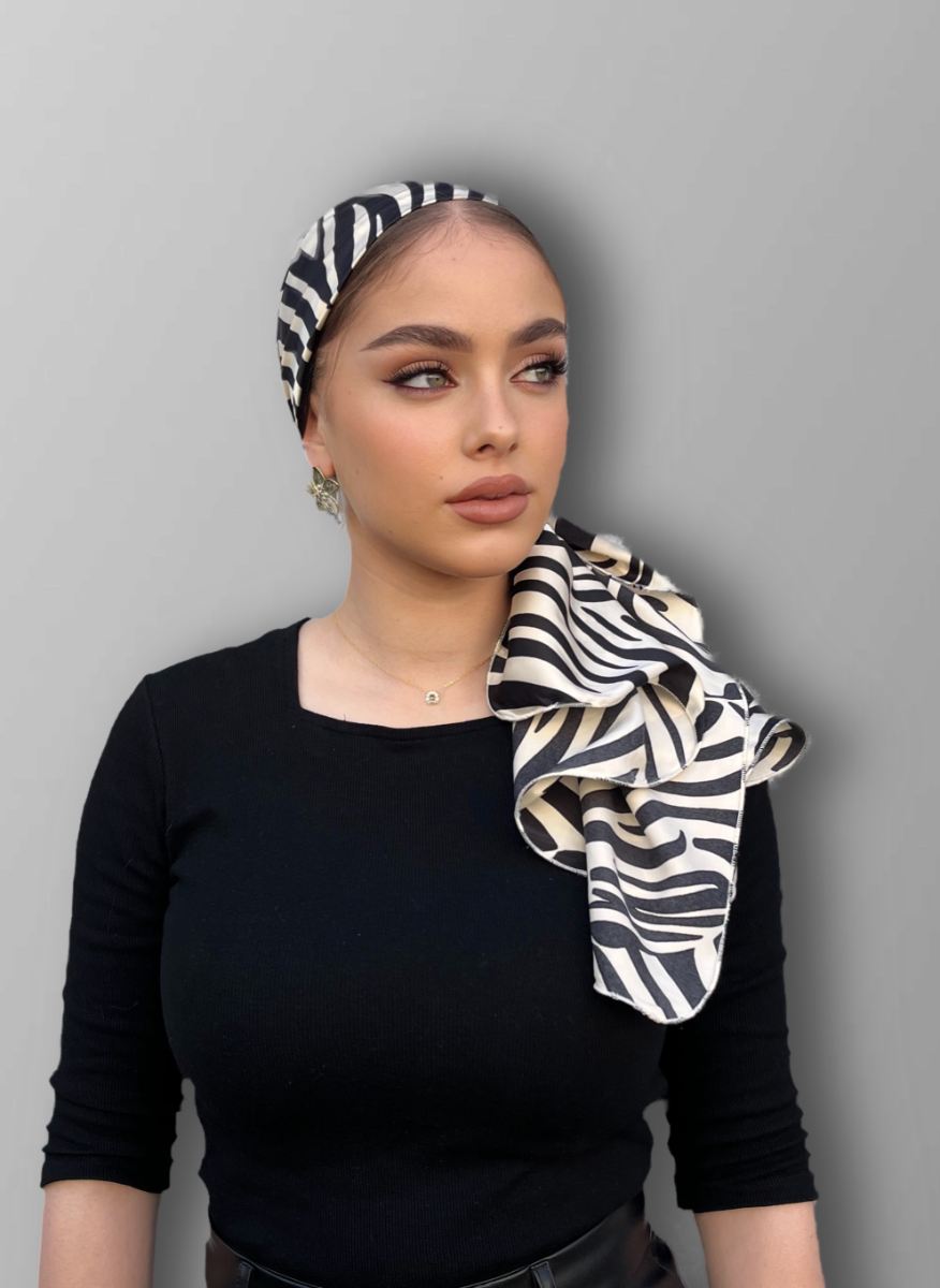 מטפחת מיני לונג בגודל 150*50 ס"מ עם הדפס זברה שחור לבן