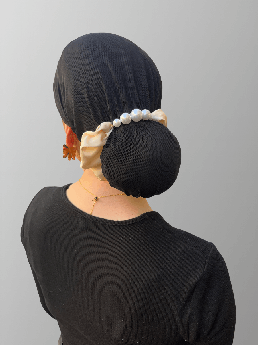 לשילוב ושידורג הטורבן רשת וליצירת מראה נמוך עם גומיה מעוטרת.