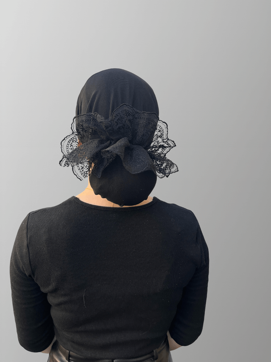 לשילוב ושידורג הטורבן רשת וליצירת מראה נמוך עם גומיה מעוטרת.