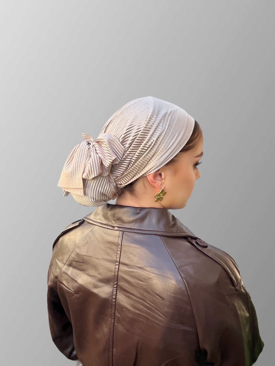 הטורבן כולל גומיית פפיון תואמת להשלמת המראה.