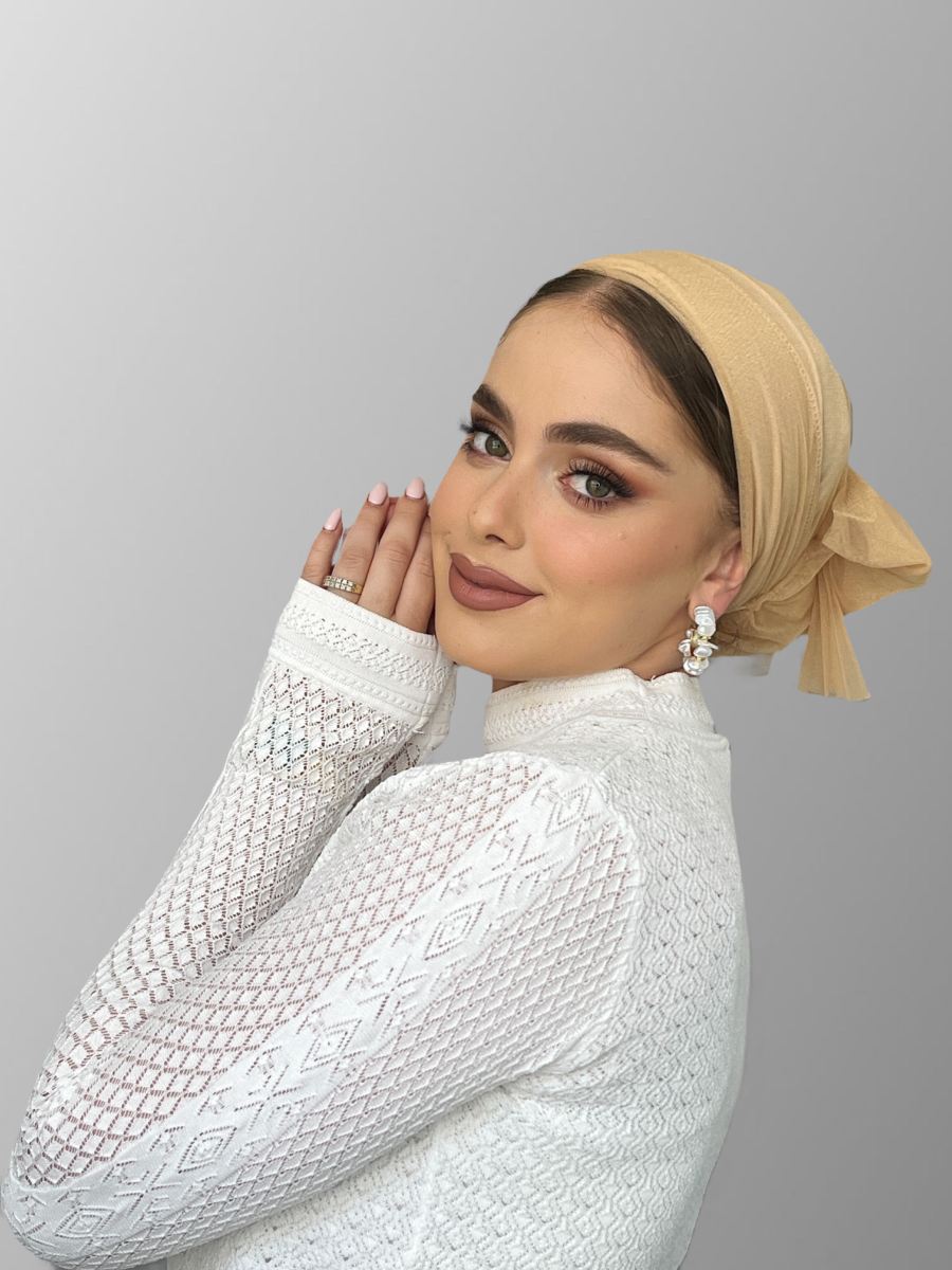 הטורבן כולל גומיית פפיון תואמת להשלמת המראה.