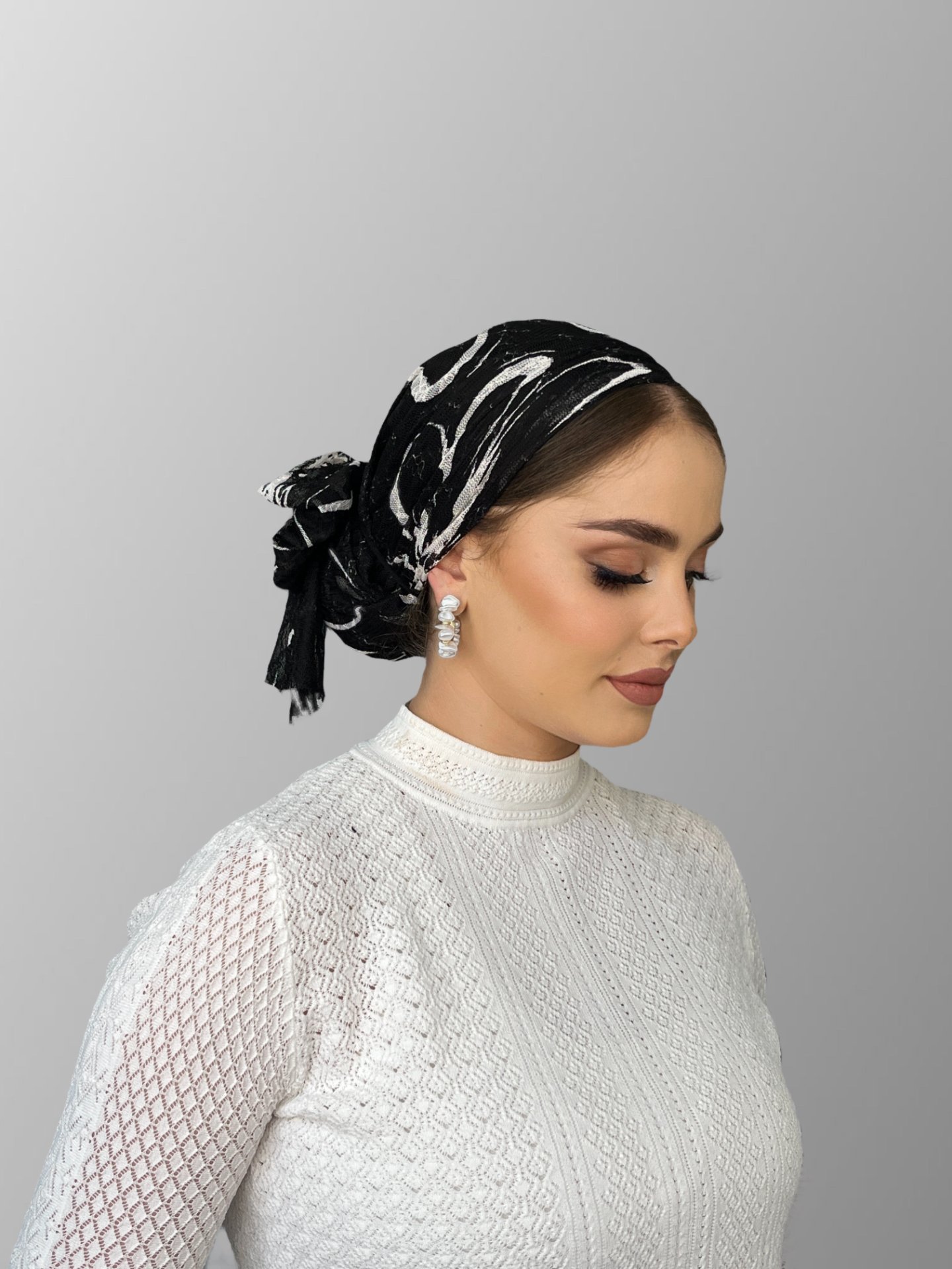 טורבן רשת ללא צורך בקשירה ללא כיווץ בקדמת הראש. מגיע עם גומיות פפיון.